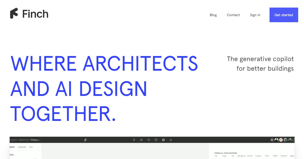 Finch is a generative design copilot for architects that pairs AI-assisted massing and unit planning with quick performance feedback, rule checks, and links into Revit, Rhino, Grasshopper, Archicad, and Autodesk Forma.